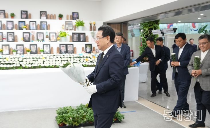 동네방네 김형규 기자 | 김영록 전라남도지사는 추석을 앞둔 3일 제주항공 여객기 사고 희생자 무안공항 합동분향소를 찾아 헌화·분향하며 희생된 분들의 넋을 기렸다.