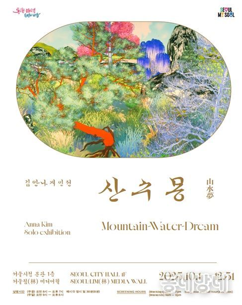 동네방네 김형규 기자 | 서울시는 2025. 10월 1일부터 12월 31일까지 서울시청 본관 1층 로비 ‘서울림(林)’ 미디어월에서 미디어아트 신작 《산수몽(山水夢)》 전시를 개최한다고 밝혔다.