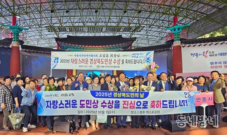 동네방네 김형규 기자 | 안동시는 10월 1일 경주엑스포공원 백결공연장에서 열린 ‘2025년 경상북도민의 날’ 기념식에서, 안동시민 3명이 ‘자랑스러운 도민상’을 수상했다고 밝혔다.