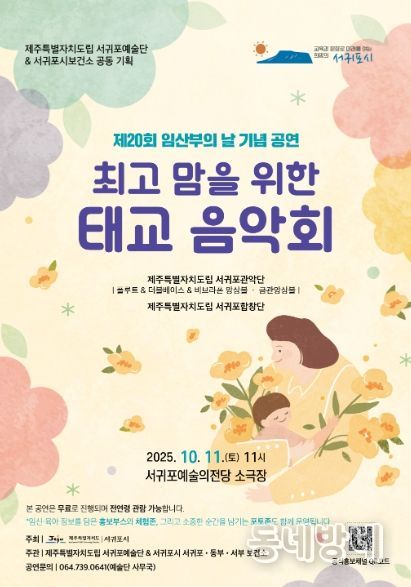 동네방네 김형규 기자 | 서귀포시는 오는 10월 11일 11시 서귀포예술의전당 소극장에서 제주특별자치도립 서귀포예술단과 서귀포보건소가 공동으로 주관하는 제20회 임산부의 날 기념 공연 '최고 맘을 위한 태교음악회'를 개최한다.