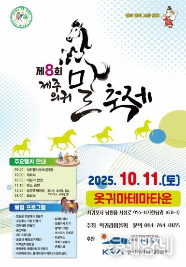 동네방네 김형규 기자 | 서귀포시는 ‘헌마공신 김만일’을 기리고, 제주 전통마와 지역 목축문화를 널리 알리기 위한 제8회 의귀말 축제가 오는 11일 옷귀마테마타운 일원에서 개최된다고 밝혔다.