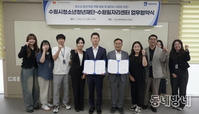 동네방네 김형규 기자 | 수원시청소년청년재단과 수원일자리센터는 10월 2일, 청소년청년의 취업 역량 강화와 일자리 지원을 위한 업무협약(MOU)을 체결했다.