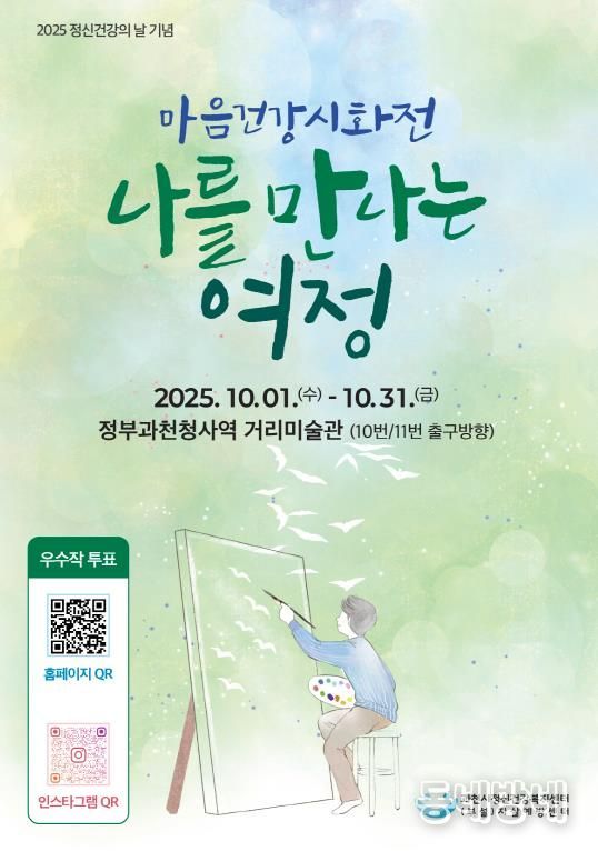 동네방네 김형규 기자 | 과천시정신건강복지센터는 정신건강의 날을 기념하여 10월 한 달간 ‘마음건강 시화전-나를 만나는 여정’을 개최한다고 10일 밝혔다.
