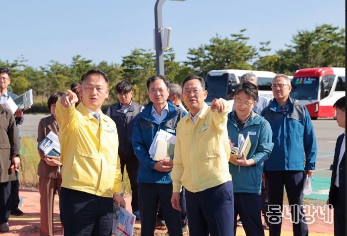 명현관 군수는 10일 대회기간 임시주차장이 운영될 산이면 구성리 솔라시도기업도시에서 현장 보고회를 갖고, 대회 준비 사항을 점검했다.