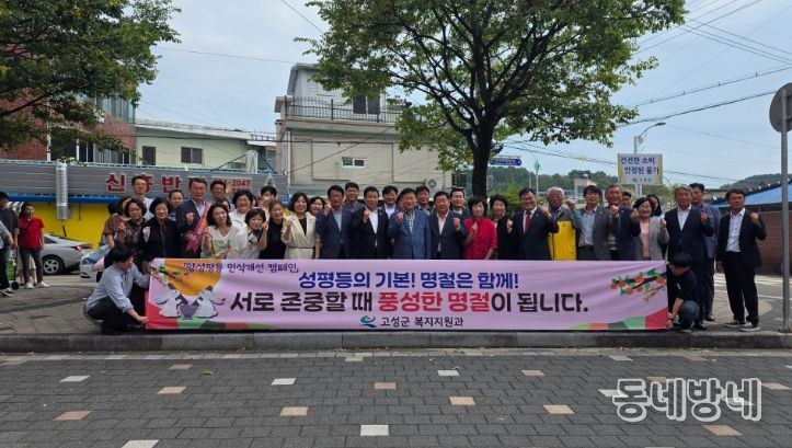 동네방네 김형규 기자 | 고성군은 10월 2일 고성군 전통시장 일원에서 고성군여성단체협의회(회장 최외숙) 회원 10여 명과 함께 ‘성평등의 기본! 명절은 함께! 서로 존중할 때 풍성한 명절이 됩니다’라는 주제로 군민 대상 양성평등 인식개선 캠페인을 전개했다.