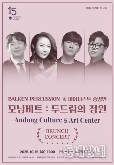 동네방네 김형규 기자 | 안동문화예술의전당은 매월 둘째 주 수요일, 클래식 애호가들을 위한 감성 콘서트 시리즈인 ‘브런치 콘서트’를 꾸준히 선보이며 지역 문화 활성화에 앞장서고 있다. 10월의 브런치 콘서트, '모닝비트: 두드림'이 오는 10월 15일 오전 11시, 안동문화예술의전당 백조홀에서 열린다.