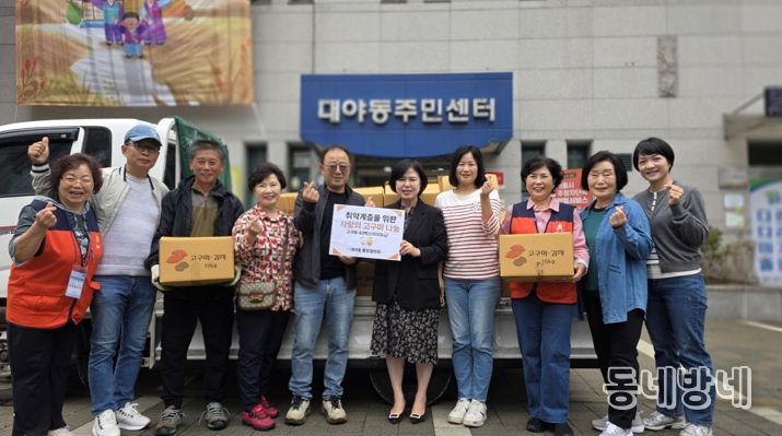 동네방네 김형규 기자 | 시흥시 대야동 통장협의회는 지난 10월 10일 대야동 주민센터에서 지역 취약계층을 위한 고구마 40상자(500kg) 전달식을 열었다. 이번 나눔은 지역 사회 돌봄의 공백을 줄이고, 따뜻한 명절 분위기를 어려운 이웃들과 나누기 위해 마련됐다.