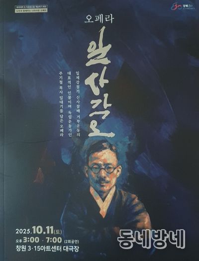 동네방네 김형규 기자 | 창원특례시는 주기철 목사(1897~1944)의 신앙정신과 항일운동 정신을 계승하고 그의 뜻을 후대에 전하기 위한 오페라 ‘일사각오’ 공연이 11일 창원 3·15아트홀 대극장에서 오후 3시와 7시 두 차례에 걸쳐 성황리에 개최됐다고 밝혔다.