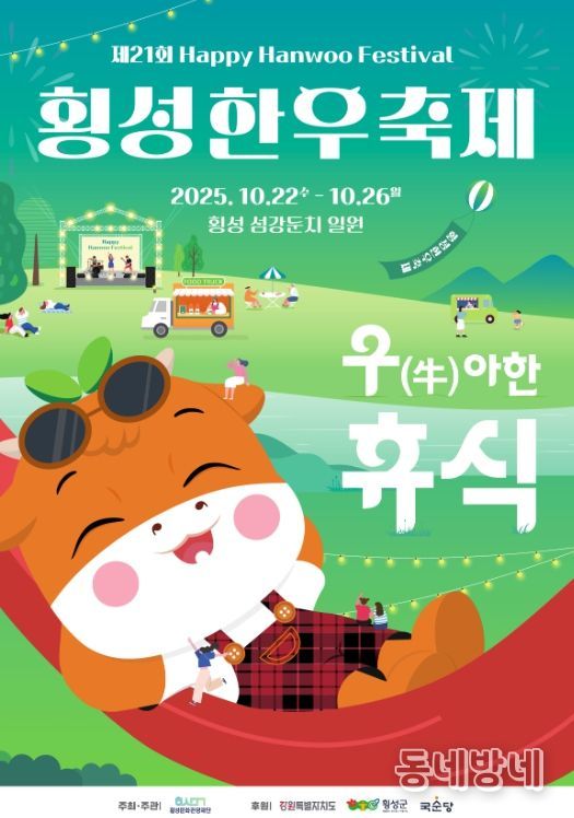 동네방네 김형규 기자 | 횡성문화관광재단이 대한민국 대표 한우 축제인 ‘제21회 횡성한우축제’를 오는 10월 22일부터 26일까지 닷새간 횡성군 섬강둔치 일원에서 개최한다.