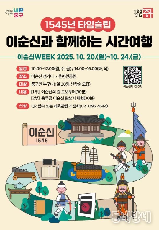 동네방네 김형규 기자 | 충무공 이순신의 고향, 서울 중구가 이순신 장군의 발자취를 따라 걷는 도보투어와 무예 정신을 되살리는 활쏘기 체험 프로그램을 오는 10월 20일부터 24일까지 운영한다.