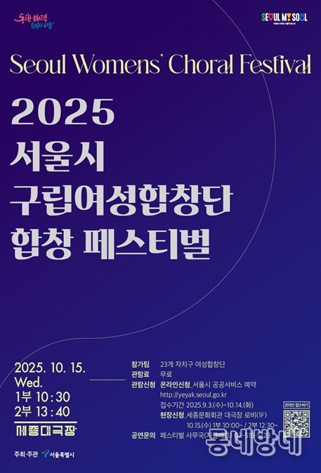 동네방네 김형규 기자 | 서울시는 깊어가는 가을을 맞아 오는 10월 15일 오전 10시 30분부터 세종문화회관 대극장에서 '2025 서울시 구립여성합창단 합창 페스티벌'을 개최한다. 이번 페스티벌에는 서울시 23개 자치구 여성합창단 700여 명이 무대에 올라, 아름다운 화음으로 시민들에게 잊지 못할 감동과 따뜻한 추억을 선사할 예정이다.