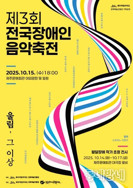 동네방네 김형규 기자 | 제주특별자치도 문화예술진흥원은 오는 15일 오후 6시 문예회관 광장에서 ‘제3회 전국장애인 음악 축전’을 개최한다.