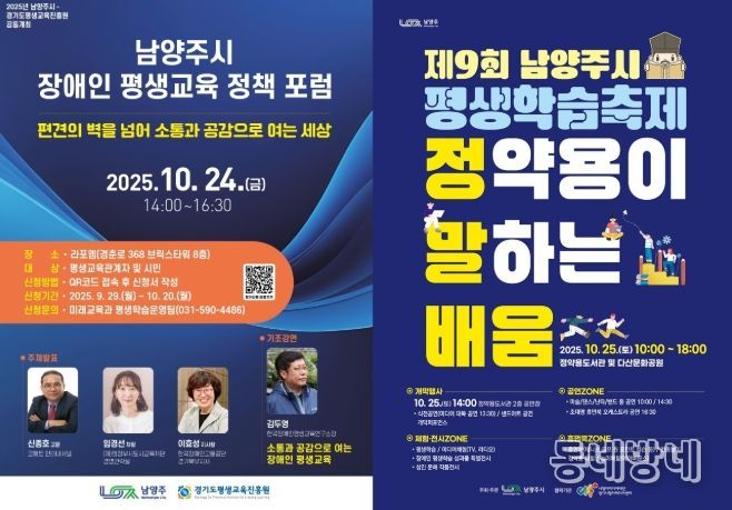 동네방네 김형규 기자 | 남양주시는 장애인과 비장애인이 함께 어우러지는 평생학습 환경 조성과 모두를 위한 평생학습 가치공유 및 활성화를 위해 오는 24일 ‘장애인 평생학습포럼’, 25일 ‘평생학습축제’를 연이어 개최한다고 밝혔다.