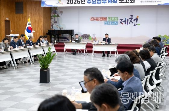 동네방네 김형규 기자 | 제천시는 지난 13일 시청 청풍호실에서 김창규 시장 주재로 국장 및 직속기관장, 부서장이 참석한 가운데 2026년 주요업무계획 보고회를 개최했다.