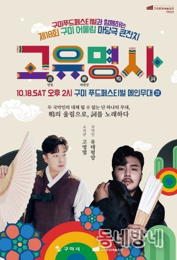 유영익 문화예술회관장은 “국악의 전통에 현대적 감각을 더한 '고유명사' 무대를 통해 깊은 울림을 느끼시고, 구미푸드페스티벌과 함께 가을의 맛과 흥을 만끽하시길 바란다”고 전했다.