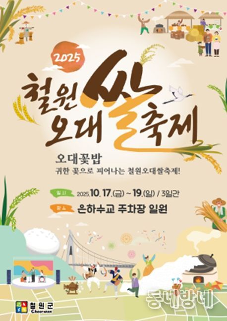 동네방네 김형규 기자 | 철원군은 10월 17일부터 19일까지 3일간 철원군 동송읍 장흥리 2721번지 은하수교 주차장 일원에서 『2025 철원오대쌀 축제』를 개최한다.