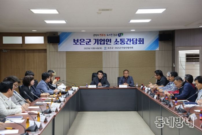 동네방네 김형규 기자 | 최재형 보은군수는 14일 군청 소회의실에서 보은군기업인협의회(회장 유성모) 회원들과 간담회를 열고 지역 기업의 애로사항을 청취하며 상생 발전 방안을 논의했다.