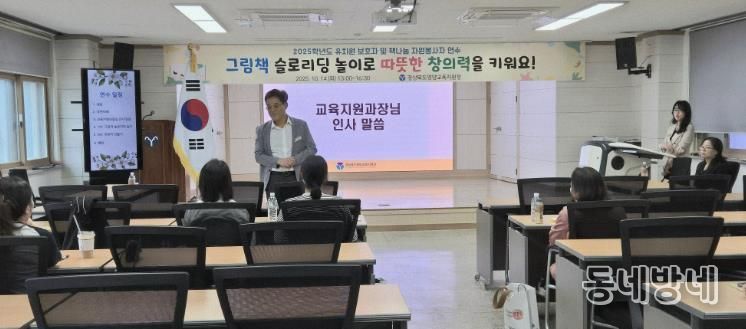 동네방네 김형규 기자 | 경상북도영양교육지원청은 2025년 10월 14일 영양교육지원청 대회의실에서 ‘그림책 슬로리딩 놀이로 따뜻한 창의력을 키워요’라는 주제로 관내 유치원, 어린이집 및 초등 1, 2학년 학생과 학부모를 대상으로 2025 유치원·초등 저학년 보호자 및 책나눔 자원봉사자 연수를 개최했다.