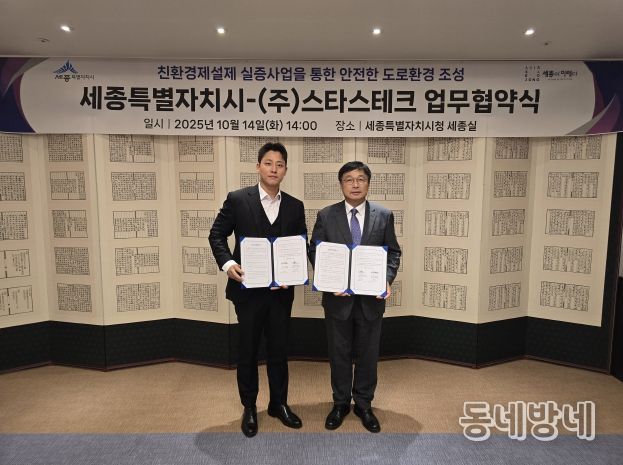 동네방네 김형규 기자 | 세종특별자치시가 14일 시청 세종실에서 ㈜스타스테크(대표 양승찬)와 업무협약을 체결해 3년간 총 1200t의 친환경 제설제를 지원받는다.