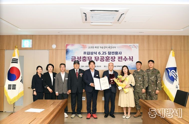 동네방네 김형규 기자 | 부산 동래구는 지난 13일 6․25전쟁에 참전해 무공을 세운 고(故) 김상식님의 자녀 김형원씨에게 금성충무 무공훈장과 훈장증을 전수했다.
