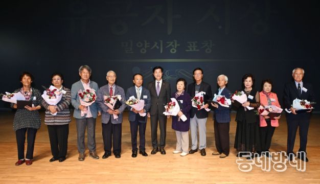 유공자 표창은 남다른 봉사 정신으로 지역사회와 이웃에 헌신함으로써 모범이 된 어르신과 노인복지 기여자 등에게 수여됐다. 삼랑진읍 금곡경로당 이정화 회장 외 19명이 시장 표창을, 삼문동 옥합경로당 김을춘 회장 외 1명이 국회의원 표창을, 무안면 서부여성경로당 송춘옥 회장 외 1명이 밀양시의회 의장 표창을, 삼랑진읍 용전경로당 김용선 총무 외 11명이 대한노인회 밀양시지회장 표창 및 장수상을 수상하는 등 총 38명이 표창을 받았다.