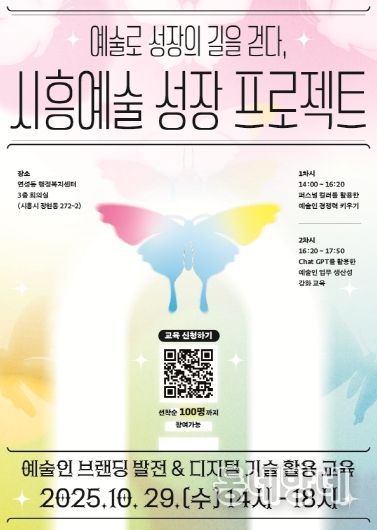 시흥예술 성장 프로젝트는 ‘문화예술 성장 및 예술인 브랜딩 발전’이라는 주제로 1부 퍼스널 컬러 교육과 2부 챗지피티(ChatGPT)를 활용한 디지털 교육으로 나눠 진행된다.