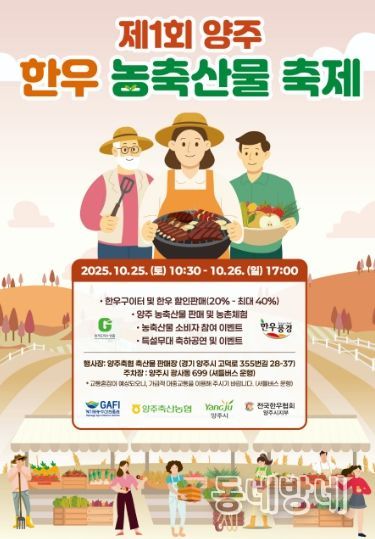 동네방네 김형규 기자 | 양주시가 양주축산농협과 공동으로 주최하고, 경기도농수산진흥원 공모사업 지원으로 추진되는 '제1회 양주 한우 농축산물 축제'를 오는 10월 25일부터 26일까지 이틀간 개최한다.