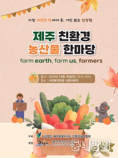 제주특별자치도는 18일 오전 11시 제주시민복지타운 내 시청사부지에서 ‘제주 친환경농산물 한마당’ 행사를 연다고 밝혔다.