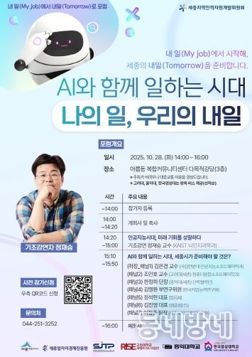 이번 포럼의 주제는 ‘AI와 함께 일하는 시대: 나의 일, 우리의 내일’로, 인공지능이 빠르게 변화시키고 있는 일의 환경 속에서, ‘나는 어떤 일을 하게 될까’, ‘세종의 일자리는 어떻게 달라질까’에 대한 해답을 함께 찾아보는 시간이다.