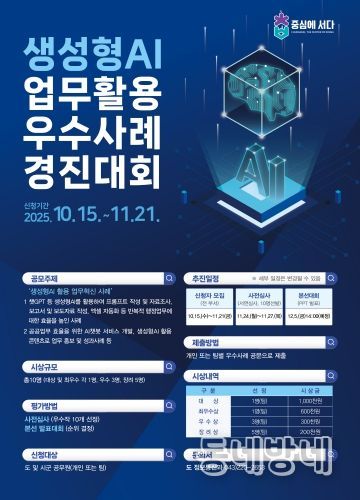 동네방네 김형규 기자 | 충북도가 행정업무 혁신을 위해 생성형 인공지능(AI)을 활용한 우수사례를 찾는다. 도는 ‘생성형 인공지능 업무활용 우수사례 경진대회’를 열고 공무원들의 창의적인 인공지능(AI) 활용 성과를 공유할 예정이라고 15일 밝혔다.