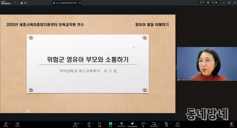 이 날 교육은 △ 위험군 영유아 부모의 심리적 특성 및 교사 지원 전략 △ 위험군 영유아 부모와의 상담 방법 등으로 구성됐다.