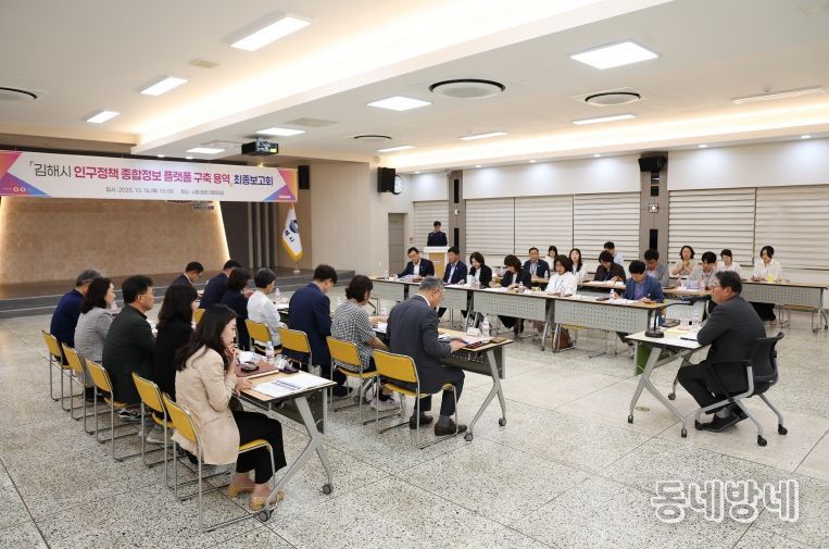 동네방네 김형규 기자 | 김해시는 16일 오전 10시 시청 대회의실에서 관계 부서장, 팀장 등 30여명이 참석한 가운데‘인구정책 종합정보 플랫폼 구축 용역’최종 보고회를 개최했다.