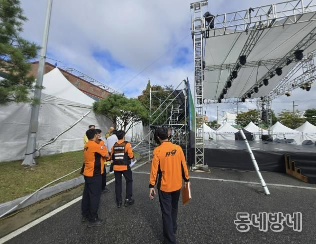 이날 축제장 주요 무대 시설, 전기 시설, 가설 구조물, 소화설비, 가스시설 이용 실태, 응급구조 체계 등 행사장 전반에 대한 합동점검이 진행됐다.