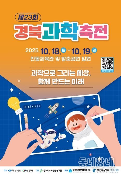 동네방네 김형규 기자 | 경상북도는 다양한 과학문화를 체험하고 즐길 수 있는 ‘제23회 경북과학축전’을 18일부터 19일까지 이틀간 안동체육관 및 탈춤공원 일원에서 개최한다.