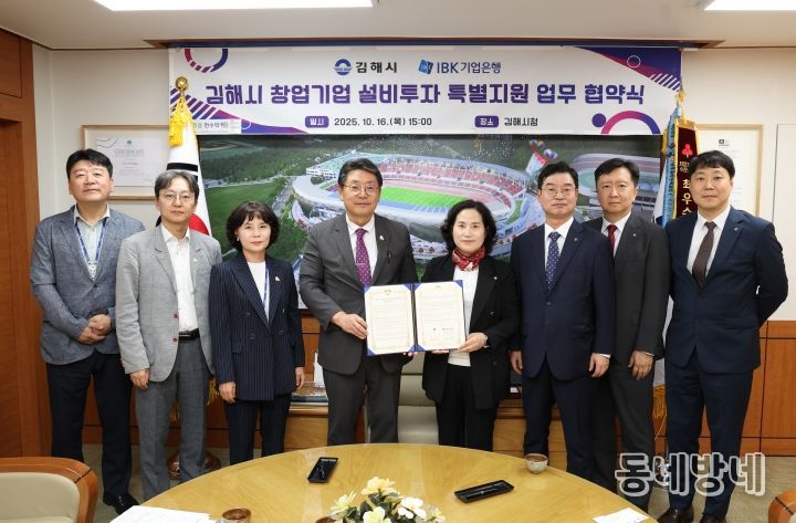 동네방네 김형규 기자 | 김해시는 16일 김해시청에서 IBK기업은행과 ‘창업기업 설비투자 특별지원’협약을 체결했다고 밝혔다.