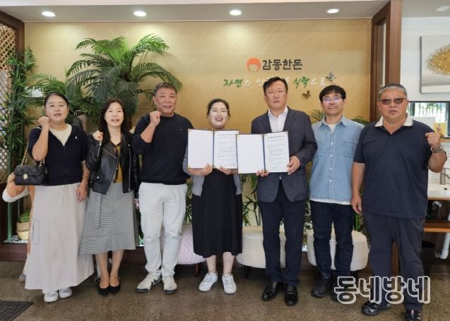 동네방네 김형규 기자 | 양주시 옥정1동 지역사회보장협의체(공동위원장 박정훈)가 16일 관내 업소 ‘감동한돈(대표 신유미)’과 ‘나눔가게’ 업무협약을 체결했다.