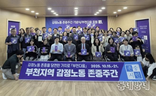 동네방네 김형규 기자 | 부천시 일쉼지원센터는 지난 14일, 감정노동 존중 주간 부천다움 포럼과 기념식을 성공적으로 개최했다. 이번 행사는 ‘감정노동자 보호법’(산업안전보건법 제41조) 시행 7주년을 맞아, 감정노동 존중을 당연한 가치로 확산하기 위해 부천시 일쉼지원센터와 부천상공회의소, 한국노총 부천김포지역지부가 공동으로 추진했다.