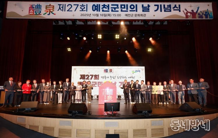 동네방네 김형규 기자 | 예천군은 16일 오후 3시, 예천군문화회관에서 ‘제27회 예천군민의 날 기념식’ 을 성황리에 개최했다. 이번 행사는 기관·단체장과 군민 등 500여 명이 참석한 가운데, 군민의 자긍심을 높이고 군민 화합을 도모하는 뜻깊은 자리로 마련됐다.