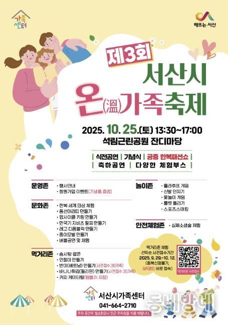 동네방네 김형규 기자 | 충남 서산시는 오는 10월 25일 석림근린공원 잔디마당 일원에서 제3회 온(溫)가족 축제를 개최한다고 밝혔다.