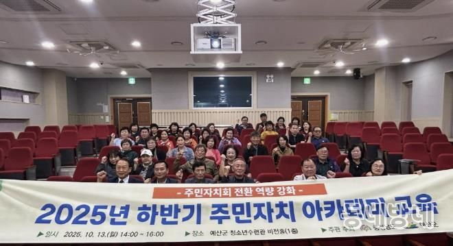 동네방네 김형규 기자 | 예산군은 예산군청소년수련관 비전홀에서 주민자치회 미전환 읍면 주민자치위원 50여명을 대상으로 ‘2025년 하반기 주민자치 아카데미 집합교육’을 진행했다고 17일 밝혔다.