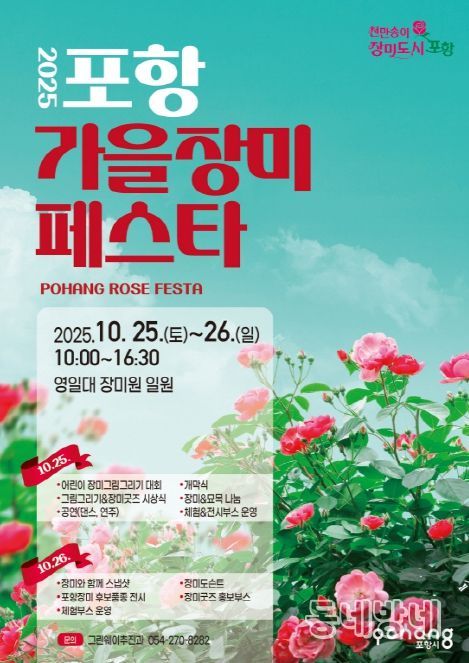 이번 행사는 가을의 낭만과 도심 속 자연을 함께 즐길 수 있는 시민 참여형 축제로, ‘바다와 장미의 만남’이라는 포항만의 독특한 매력을 느낄 수 있는 다채로운 프로그램이 펼쳐진다.