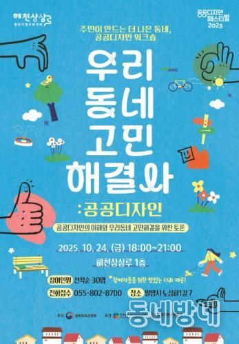 동네방네 김형규 기자 | 밀양문화관광재단은 오는 24일 오후 6시 해천상상루에서 ‘우리 동네 고민 해결사, 공공디자인!’ 워크숍을 개최한다고 17일 밝혔다.