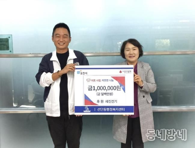 동네방네 김형규 기자 | 선단동은 세진전기와 군내종합설비에서 각각 이웃돕기를 위한 100만 원을 전달했다고 밝혔다.