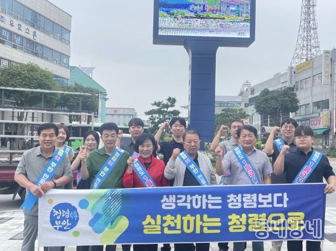 동네방네 김형규 기자 | 지난 16일 부안군청 민원과 직원 및 바르게살기운동 부안군협의회(회장 장대현) 회원 10여 명이 손을 맞잡고 조직문화 개선을 위한 청렴 캠페인을 실시했다.
