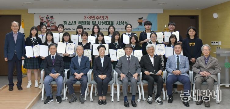동네방네 김형규 기자 | 대전광역시 3·8민주의거기념관이 주최하고, 대전광역시교육청·대전지방보훈청·사)3·8민주의거기념사업회가 후원한‘3·8민주의거 청소년 백일장 및 사생대회’시상식이 10월 17일 3·8민주의거기념관 강당에서 개최됐다.