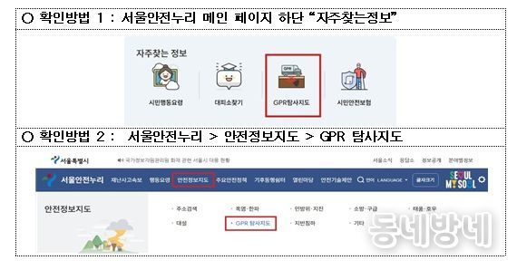 한병용 서울시 재난안전실장은 “서울시는 지속해서 GPR 탐사를 강화해 왔으며 발견된 공동은 100% 신속 조치해 지반침하를 사전에 예방하고 있다”며 “GPR 탐사뿐만 아니라 굴착공사장의 안전관리를 더욱 강화하고, 지반침하 예방을 위한 신기술을 도입해 안전한 서울을 만들어 나가겠다”라고 말했다.