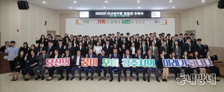 이 시장은 “오늘의 주인공은 신규공무원 여러분이지만, 이 자리를 함께해주신 가족분들이야말로 진정한 동반자이자 버팀목”이라며 “청주시민들의 행복을 최우선으로 하는 열정 있고 따뜻한 공직자가 되어달라”고 당부했다.