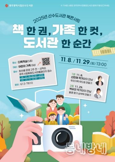 동네방네 김형규 기자 | 광주광역시립산수도서관이 오는 11월 8일과 29일 두 차례 ‘가족을 위한 북콘서트’를 개최한다.