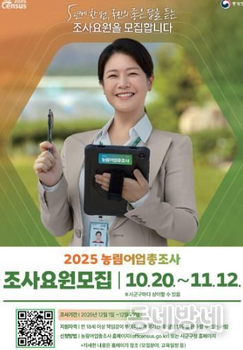 동네방네 김형규 기자 | 김천시는 오는 12월 1일부터(온라인 조사는 11월 20일부터) 실시되는 2025 농림어업총조사의 성공적 추진을 위해 조사원과 관리자 등 조사 인력을 모집한다.