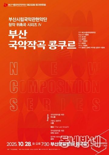 동네방네 김형규 기자 | 부산시립국악관현악단(예술감독 이동훈)은 ‘창작위촉곡 시리즈 Ⅳ '부산 국악작곡 콩쿠르'’를 오는 10월 28일 오후 7시 30분, 부산문화회관 중극장에서 개최한다. 이번 공연은 평택시립국악관현악단 부지휘자 조다은이 객원지휘를 맡고, 음악평론가이자 월간 객석 편집장인 송현민이 사회를 맡아 진행한다.